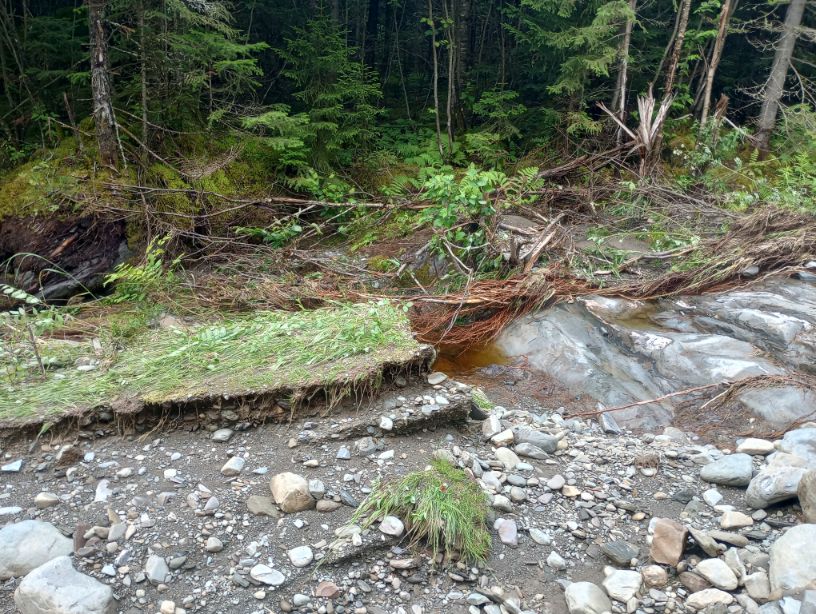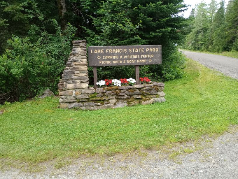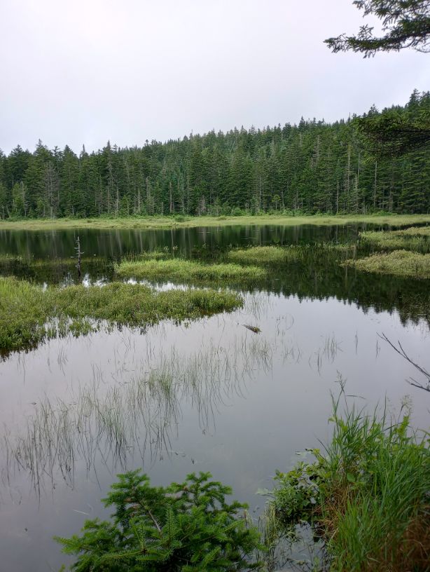 I left the park at 5:45AM and hiked the Lake Francis Trail. Part of it was in the lake, but I was so hopelessly wet that it didn’t matter. There were blown culverts, but I climbed over and around the issues. It was okay. There were random holes in the ground, but I managed to not twist an ankle. I suspect the holes were from moose who had sunk into the soft ground.