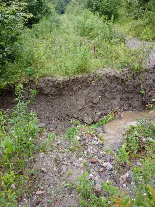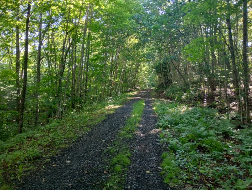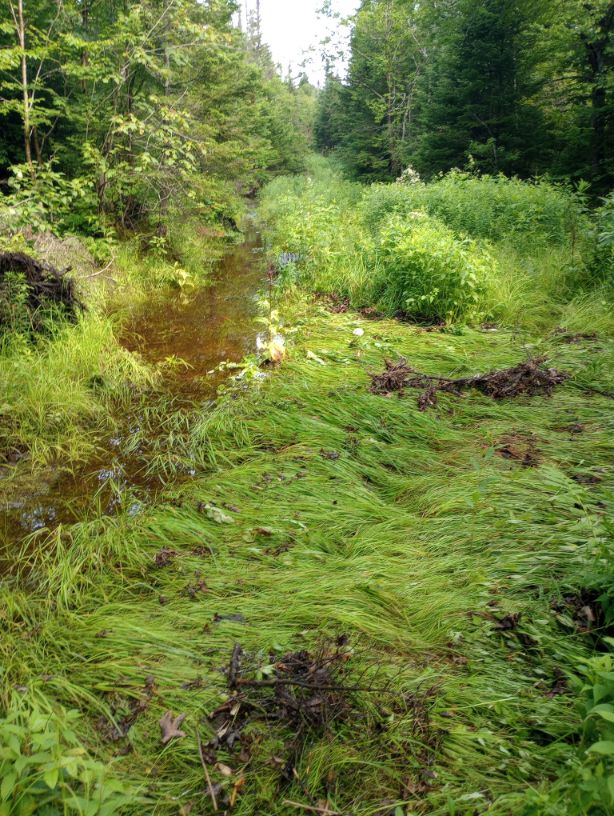 We returned from this out-and-back section, said goodbye, and I continued hiking south alone to rejoin my stuff at Deer Mountain Campground. The trail was overgrown and messy on a snowmobile trail, then on an old road with many culverts washed out. Crossing some of them was interesting, given the high water levels.