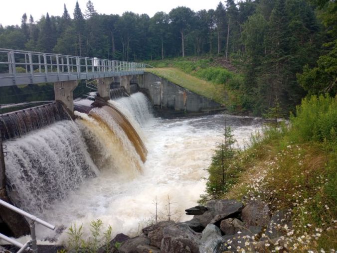 I rejoined the trail briefly at Second Connecticut Lake Trail, but soon found that the trail itself was completely submerged thanks to the earlier rains. It wasn’t merely wet – it was quite literally in the lake. I got to the dam and its roar was insane.