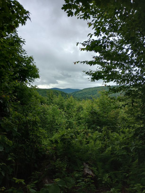 I had about one really nice mile with great views and sunshine. Then, as I was swatting the overgrowth away, a bug of some sort bit my finger and it swelled up to nearly twice its normal size – a reaction I’d never had before. I concluded that either I was going to die or I wasn’t, and if I did die, at least I wouldn’t have to keep hiking.