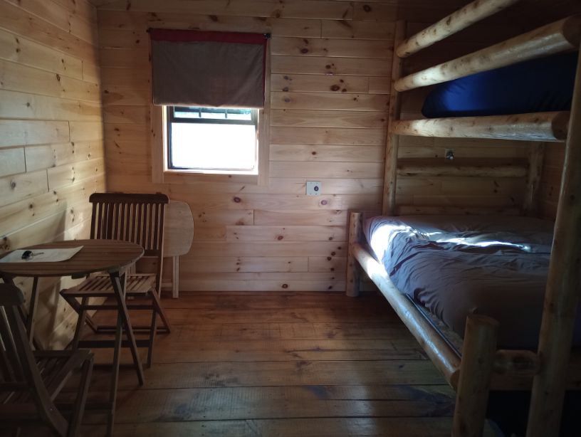 I had a really cute, small cabin. When I had booked this accommodation, I realized that the cost for a cabin was about twice the cost of a campsite, and a campsite wasn’t much, so it made more sense to get a roof. I thanked past me profusely for that splurge. I strung everything out to dry. I was ecstatic to see that the cabin “with no power” actually had a USB charger, so I could charge up my phone. It was a perfect place to stay, and very affordable.