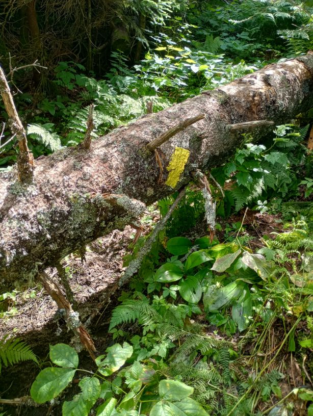 I got a late start because I didn’t have far to go. I got a breakfast sandwich and took my time. The trail, of course, was a bit overgrown, but then I hit a logged portions. At one point in a logged area I sank into mud and as I pulled my foot out, my sandal snapped in two pieces. I have hiked thousands of miles in sandals and this is the first true failure I’ve ever experienced. Of course, I don’t only hike in sandals; the conditions have to be right.