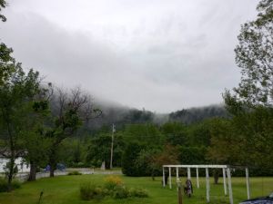 Due to intense, terrifying rains, it was not a restful night. A world-drowning flood made us stay up late, listening to the weather radio and worrying that we would need to evacuate the campground. I would not have wanted to be any closer to the Connecticut River than we were. As it was, I woke up panicking every couple of hours.