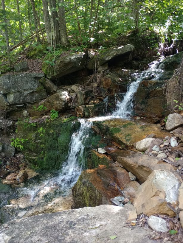 Hooray! Moving again. I awoke very early but had shared the space with other hikers and didn’t want to disturb them. I waited until everyone was up before I packed. I meandered to Covell Mountain, enjoyed views and fun ledges in the woods, and found my way on the Ramblewood trails to Ramblewood Campground.