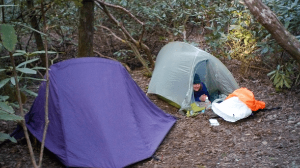 We pulled over at a little stream covered by rhododendron which had clearly been used for camping but is not one of the large campsites which exist along this trail. It was not the flattest place I have ever camped, but it was pretty good. We were so tired that it didn’t need to be perfect.