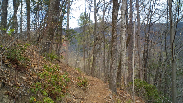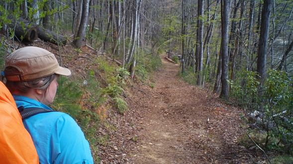 After a morning climb and then descent to the scenic Chattooga River, the trail got narrower and more challenging. It was also a weekend, so we often met people on skinny trail and needed to negotiate passage. Because the trail hugged the river, there was an enormous number of small but belligerent up and down portions, often in mud, as the trail had to be built in places where the river could not erode it. As a result, it felt like most of the day was climbing or descending. Small climbs add up quickly.
