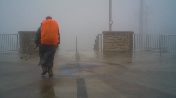 By the time we reached the summit, it had nearly stopped raining and we walked through a low-hanging cloud obscuring the view – but it wasn’t lightning, so I could hardly have cared less about the lack of view.