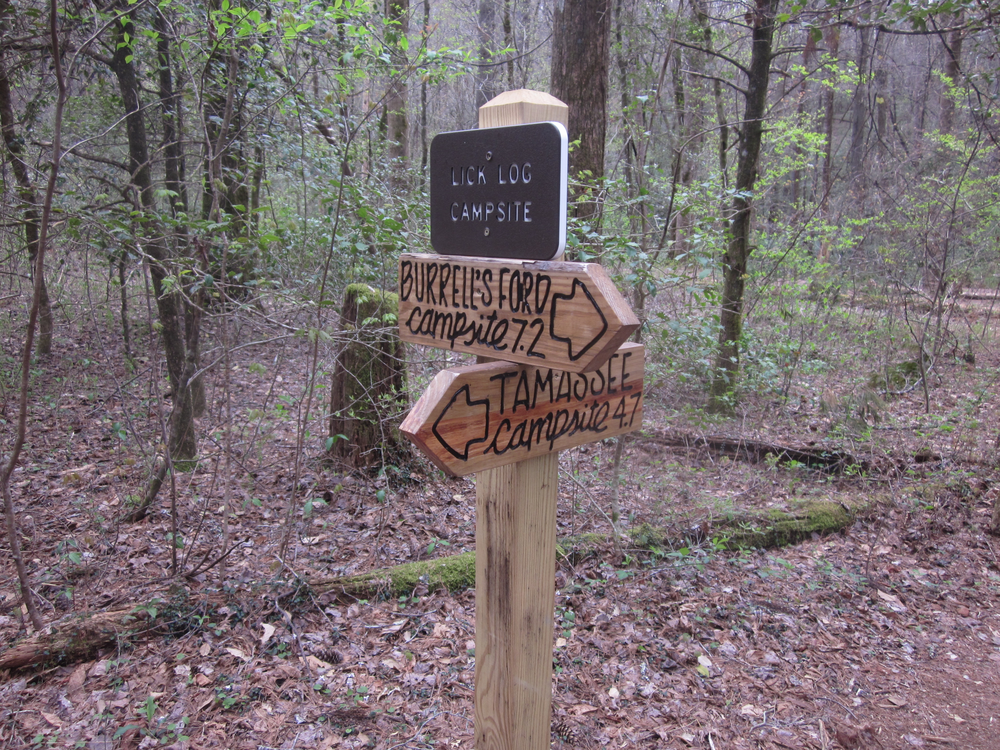 We started at Oconee State Park a bit after noon – earlier than we thought we would be on trail. I had assumed we would only make it to the first campsite (4 miles in) due to the shuttle, but we got to the campsite for a late lunch and kept going. The trail was inviting – well-marked and well-maintained.