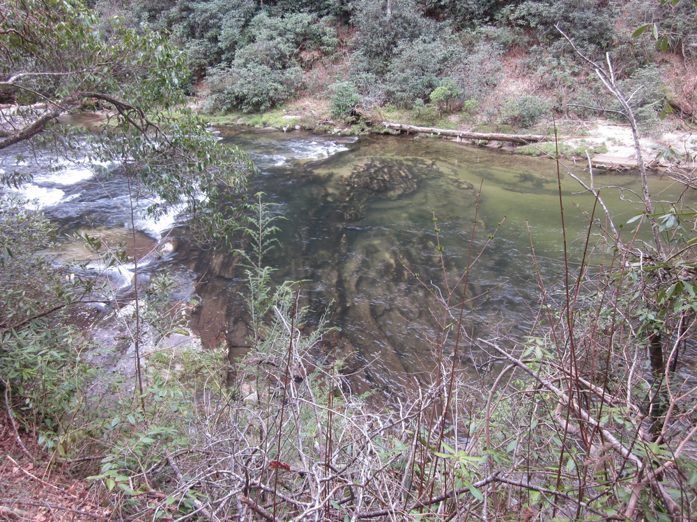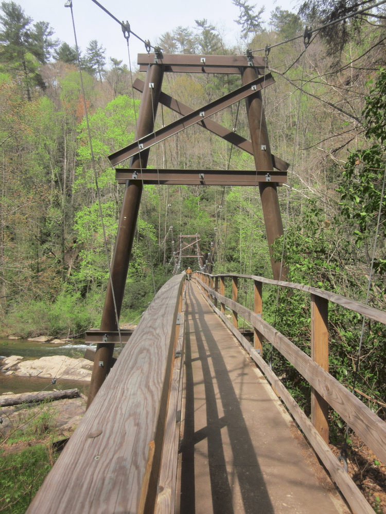 The trail from the falls to Whitewater Campsite was, I would say, the hardest stretch of the entire Foothills Trail. First, the descent from the falls viewing platform to the river was a plummet. It was knee-grindingly, toe-poundingly steep – though to be fair, it was also very hot, and my memories are never quite fair when I feel I am going to burst into flames.