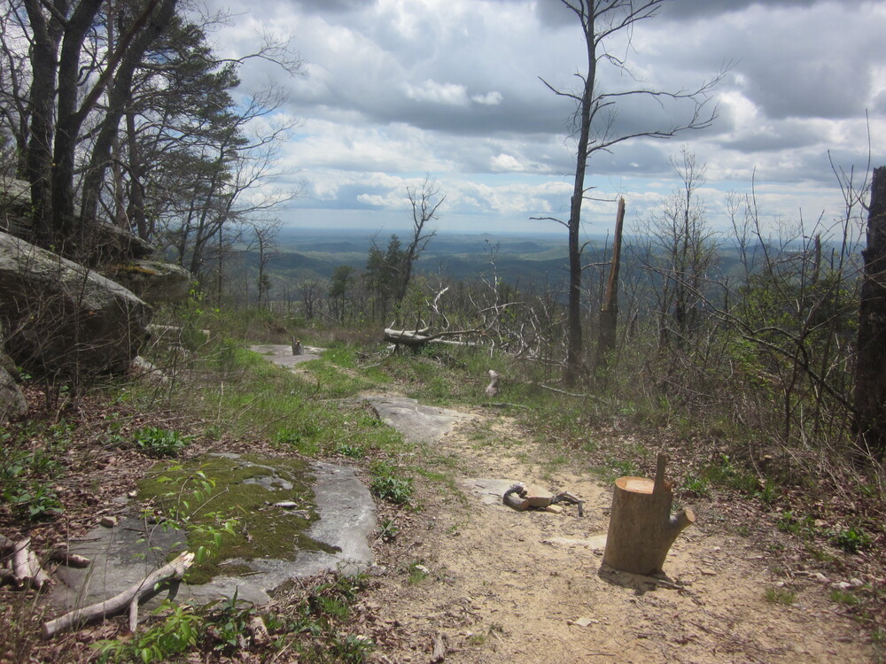 Late in the day we had a 1,000 foot climb when temperature regulation was especially challenging. The climb was fairly well-graded and pleasant, with a small water source with a bloated mouse in a bucket. Luckily we could get water without using the bloated mouse bucket. One other bright side of the climb was that it took us next to Ellicott Rock Wilderness, so we diverted to visit it.