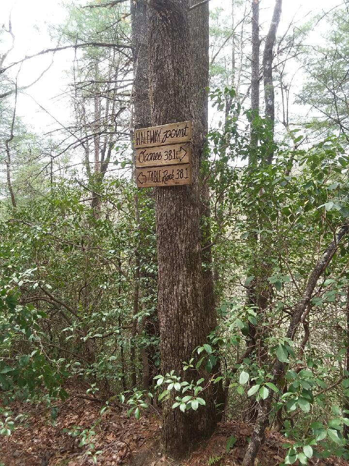 The storm was supposed to hit around 11AM and we had no intention of being the highest people in South Carolina when it came. Thanks to our extra endeavor the night before, we were at least halfway up Sassafras Mountain and it seemed as if we ascended the harder half the day before. (Or maybe it was because we were freshly-rested in the morning!) There was even one stretch of the climb that leveled off where we could hike instead of trudge. The temperatures were cool and the rain was light and tapering off. It was okay.