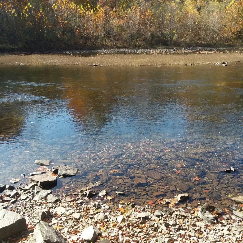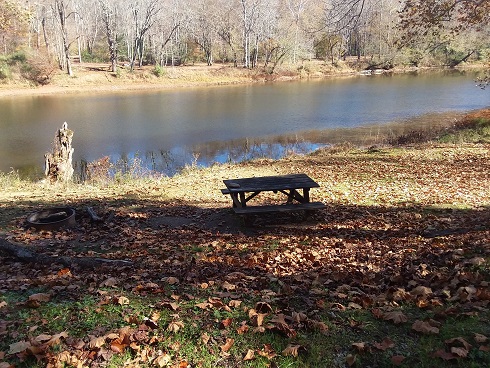 When I reached the shelter / camping area around 2PM, I anticipated having to share. It was Saturday, and I’d seen a fair number of people around. I decided to forego the shelter and claim a tent spot near the river. It had a picnic table and a gravel tent platform and could not have been more scenic.