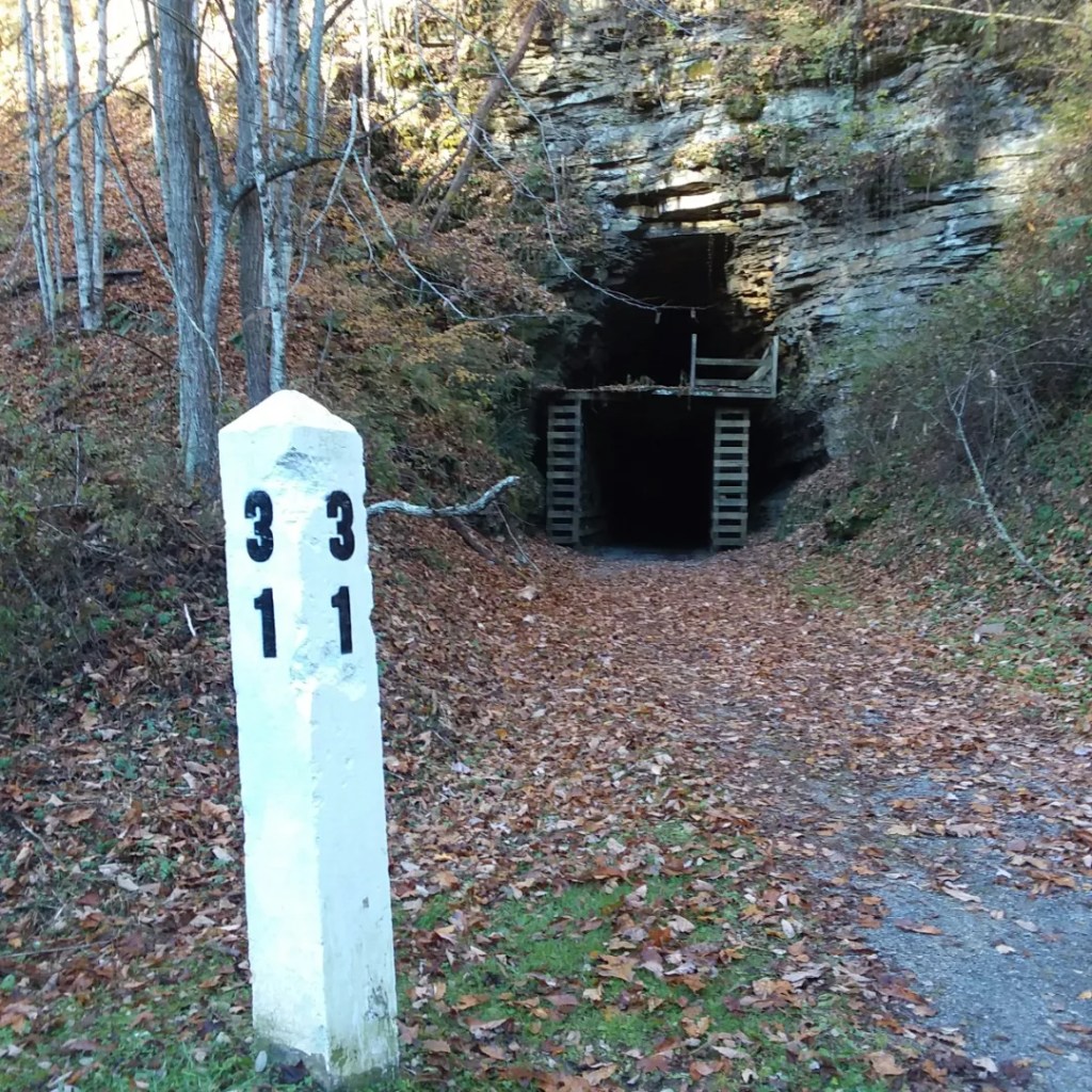 Again I awoke just before first light and began packing up. The morning was bitterly cold and I was in shadow waiting for the sun to poke above the mountains. It seemed to never come. There were a lot of landmarks this morning – small towns, and the 400-foot-long Droop Mountain Tunnel. I had my headlamp in my pocket for just this moment. The tunnel curves, so when you first step inside it, you cannot see the end, and it is quite eerie.