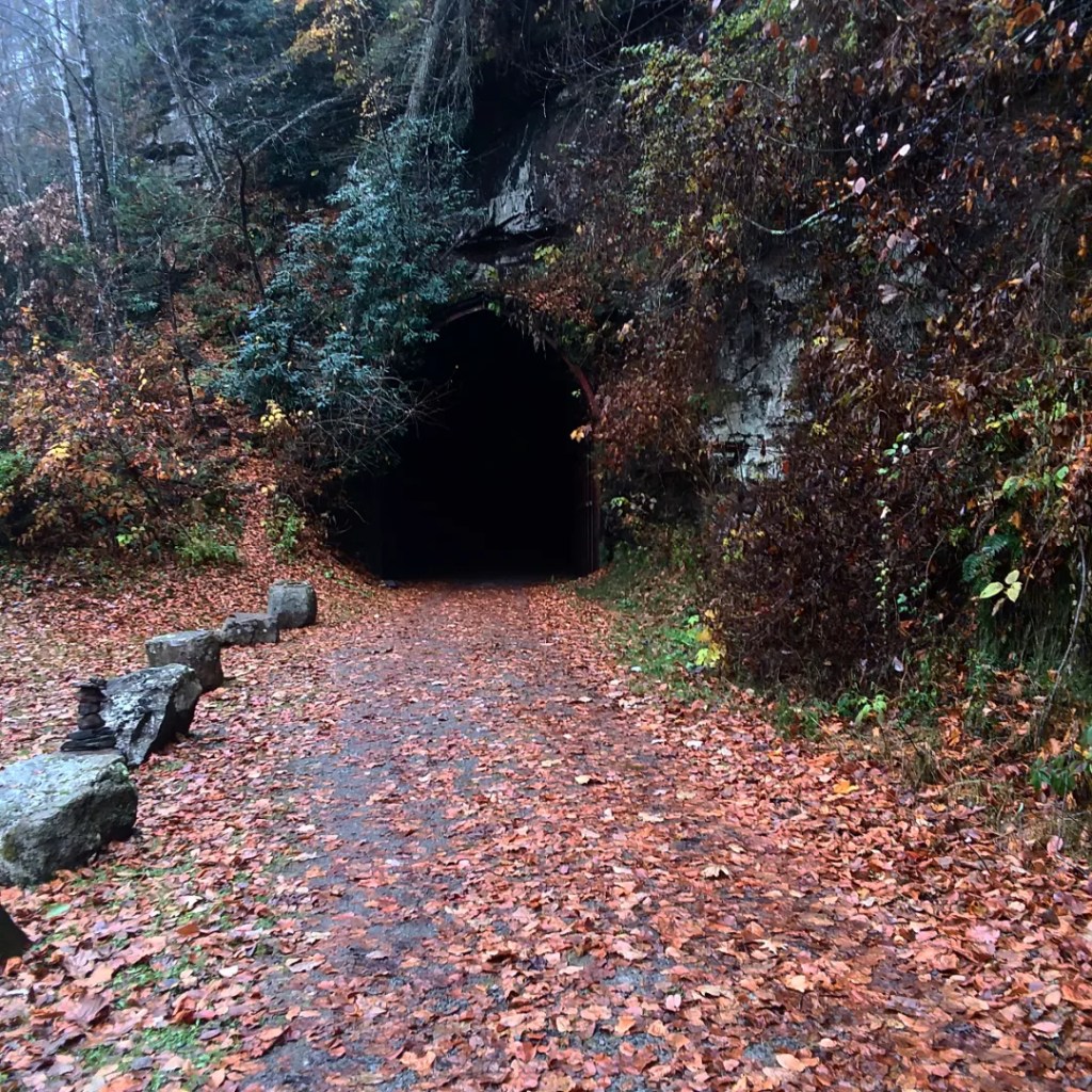 The trail was fairly wet and unsurprisingly I saw no one else enjoying it. I loved going over a curved bridge and being on the west side of the river again. Maybe because the trail began on the west side, it felt right to be on the west side. I also got to hike through Sharp’s Tunnel – another time to use the headlamp.