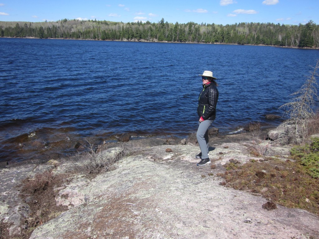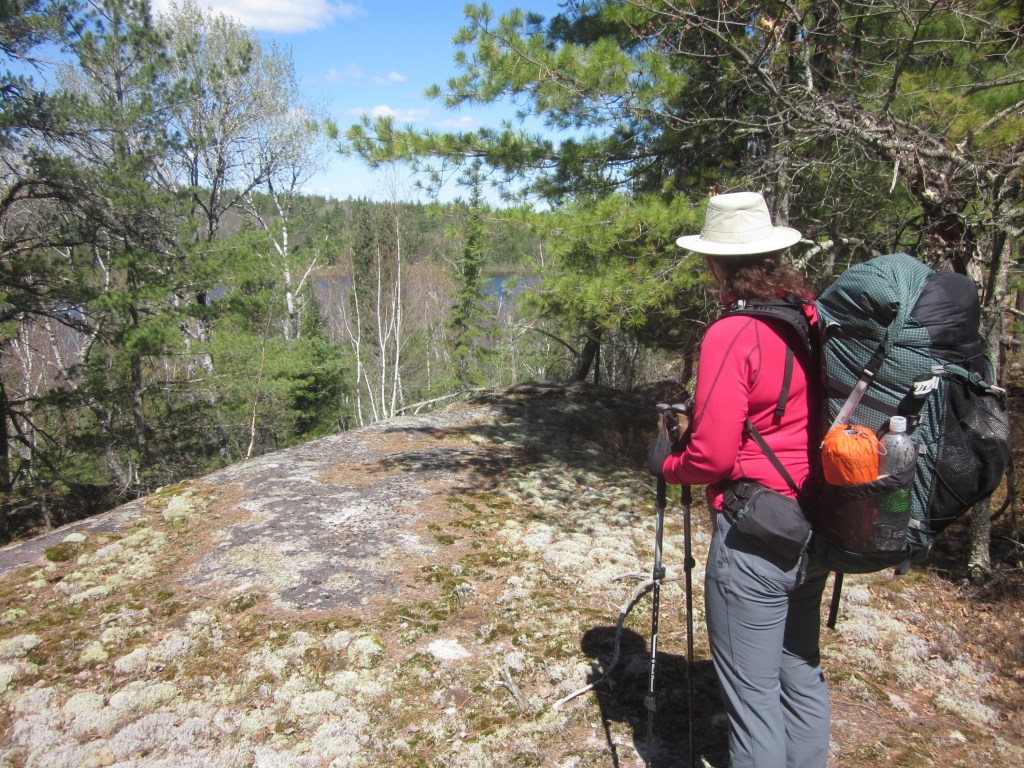 We continued down Dovre Lake’s trail and discovered that part of the trail network – a short connector – no longer exists. You can see it, but it’s not open. So it kind of exists. We detoured around, which included some lovely rock ledges. Then we began the hike out to Little Vermilion Lake. This is a tough spot, not because the trail is exceptionally rough- it’s same-old BWCA rocks and roots- but because it’s a couple of miles out to the campsite on the lake. If someone else is out there, you are out of luck. We ran into another hiker who told us good news: the site was empty!