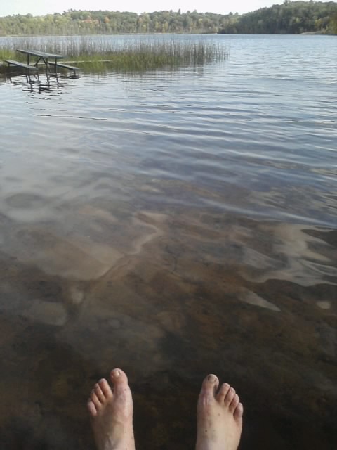 Monday thoughts: Oh, and while I am lamenting the return of the bloodsuckers I almost forgot to mention my attached deer tick. Insult to injury. That little sucker got the duct tape treatment. Also, the wound on my stomach is slowly oozing blood and my left ankle is throbbing from all the ditch-jumping and I ripped a giant hole in my shoe and a couple little holes in my tent. GREAT. So not having cell reception in Marathon County quite possibly has saved this trip.