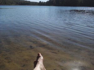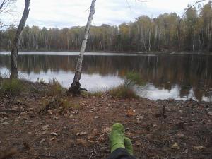 Ugh, this picture didn’t turn out at all. I would have gotten a lot farther today if I hadn’t stopped for a 3 hour break at Dinger Lake to read a book. It was so sunny and beautiful and those perfect moments are little remaining now that I am nearly done. Today was the nicest weather forecast for the next week – upcoming days don’t look bad but perfect indian summer days to sunbathe may be done for the year. So I can’t regret a few perfect hours.