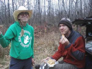 Yesterday evening I was frigid after too much icy rain (and too much time spent trying to wait out the rain at a pavilion, bad move Jo) and I managed to make it near the Plover River trailhead. I curled up in my sleeping bag and shivered uncontrollably for hours. With no reception I was stuck, until I managed to get a message through to my friend Charles. He and I and Fritz hiked a section of IAT in 2011 and without that trip I would not be here today. And then he swooped in at 10PM like a knight in shining armor and I got a hot shower and a futon and company on my hike today. Wow! What a difference 24 hours can make. Thank you Charles for being my trail angel!!