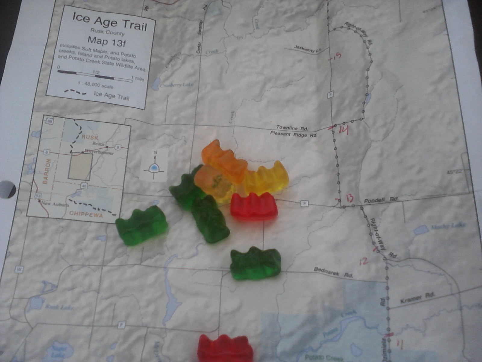 This is my supper – gummi bears and a good healthy dose of denial that I am on map 13.