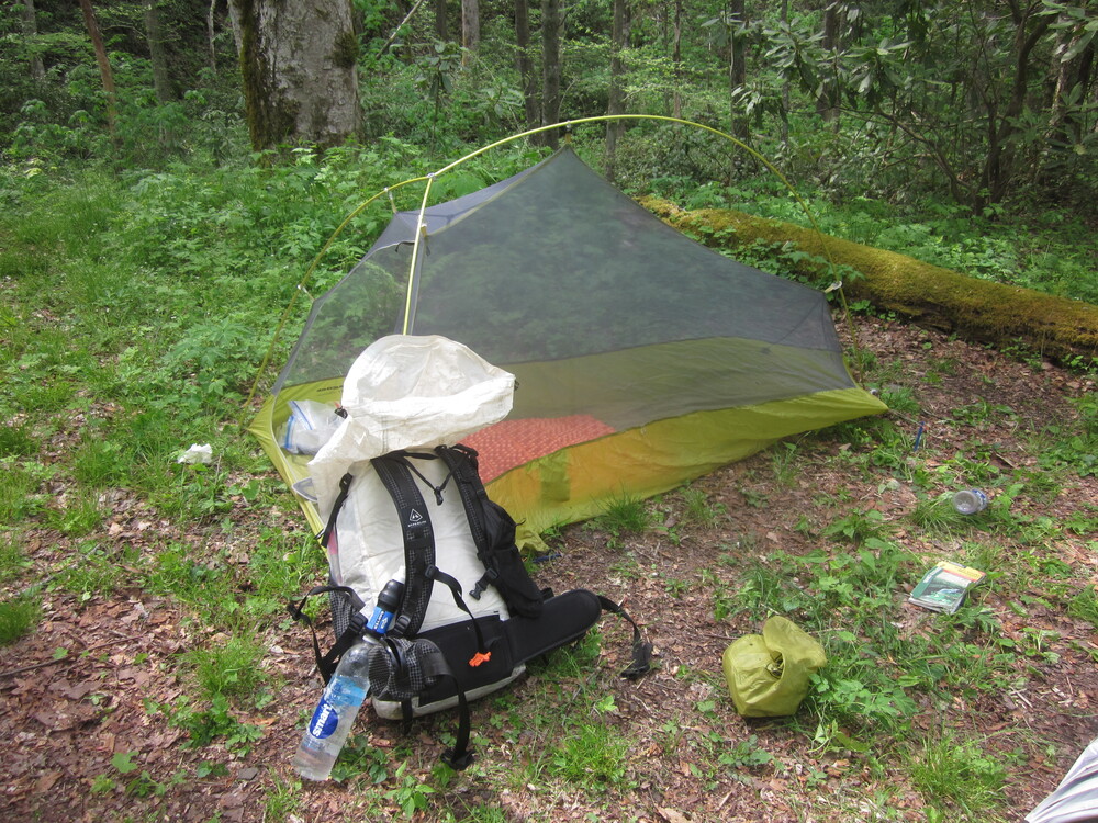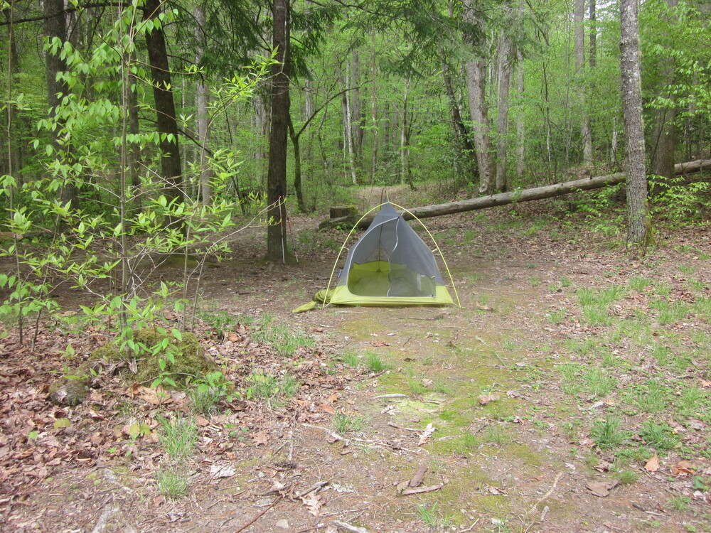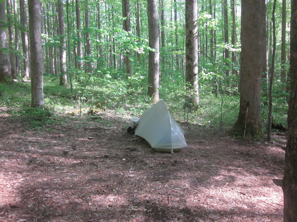 I got to the campsite at 1:30 – very early, considering all my breaks. I had the campsite to myself and loved being camped between two streams. I was completely alone, miles from anyone. The nearest people to me were likely on the Appalachian Trail, two miles away and 3,000 feet up, with no trail connecting us. I sat on my new pad in the sunshine, reading books and enjoying all the green.