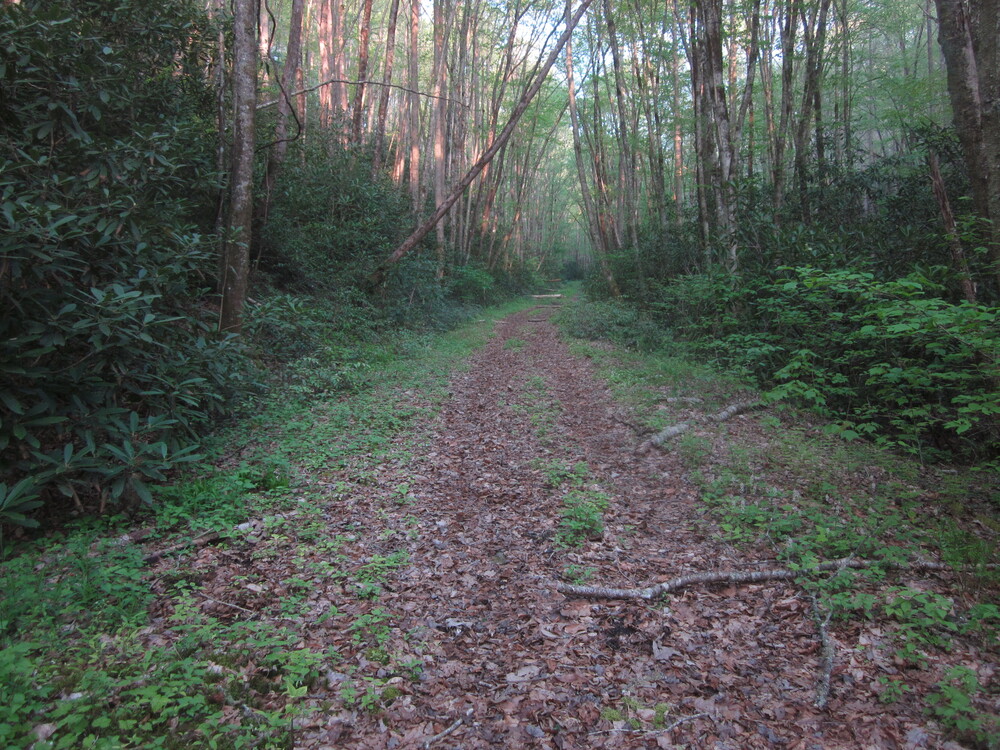 The forecast for this day was not great, so I got up very early and began my 3,000 foot ascent. The trail to Pickens Gap followed an old road and crossed the Little Fork of the Sugar Fork, the creek where Kephart lived. I did not venture off-trail to see his cabin site: nothing remains anyway, except a flat area. But nevertheless I was walking in his footsteps.