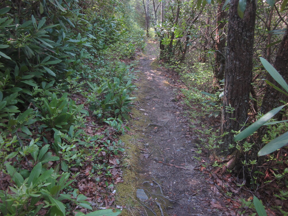 The climb from Pickens Gap left the old roadbed and was steep, as advertised in my guide. But it was cool out, a short rain shower was refreshing, and Haw Gap was gorgeous. I would love to spend an entire day at Haw Gap. I got cell reception there for the first time since leaving Fontana Dam, so I took a break and let everyone know I was alive.