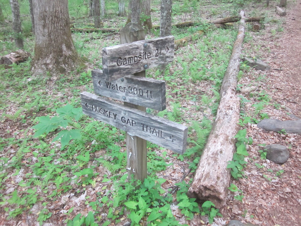 There was water near the top, which was cold and delicious, and the trail passed an abandoned campsite. I love abandoned campsites. I finally reached the Appalachian Trail intersection and followed it to Spence Field Shelter.