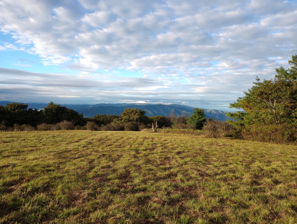 Although it rained during the night, the morning dawned lovely, with a hint of ominous wind. I cannot picture a more beautiful morning. We ascended Gregory Bald and had it all to ourselves. This is one of only two maintained balds in the Smokies, and the first one I’d ever been to. I remember how crushed I was when I was hiking the Benton MacKaye Trail in 2012 and discovered that Newton Bald was really just a patch of woods. But not Gregory Bald!