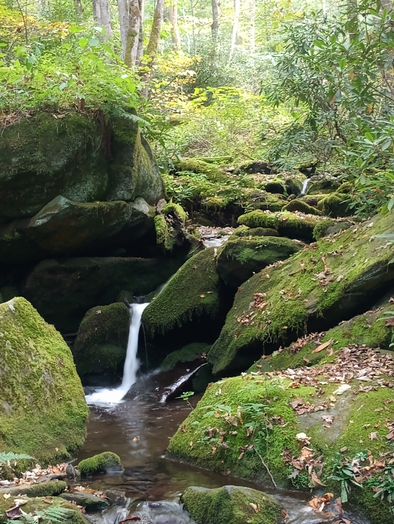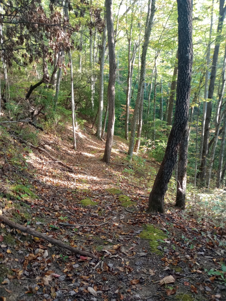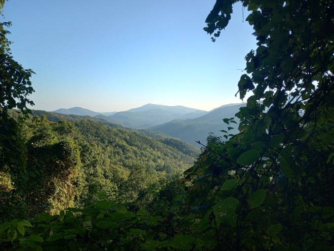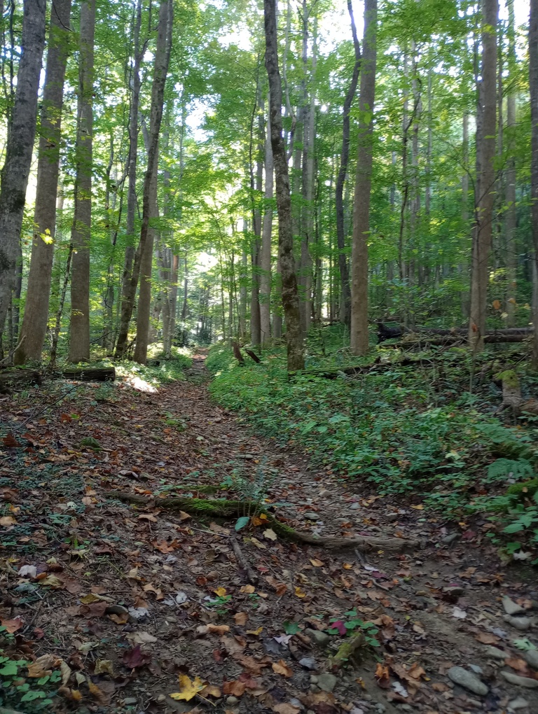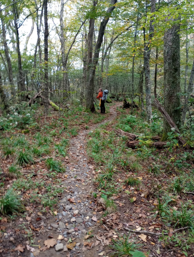 As I crested a new hollow, I glimpsed a bear. I knew it was there before I heard it or saw it. I was so happy; I had just spent an entire week in the Smokies and not seen one. Is that even legal? It knew I was around and left quickly. The trail highlighted many little hollows where the sun wasn’t even reaching at this point.