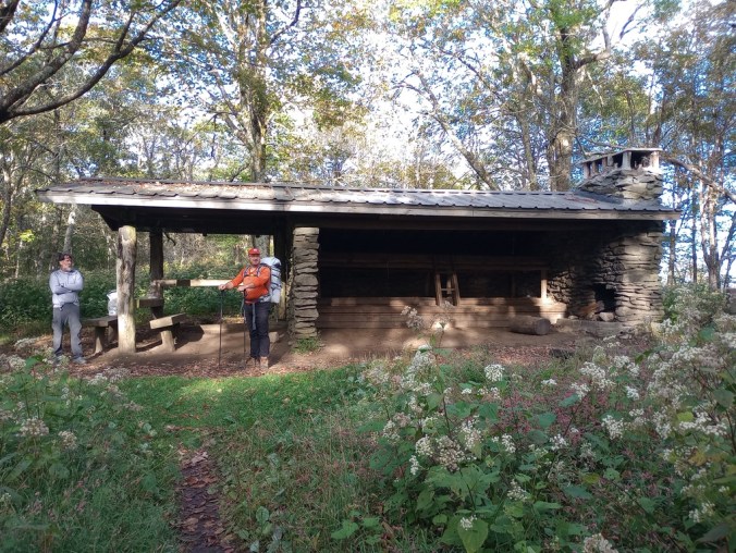 The wind was picking up and the clouds blowing in, so it was a fairly fast ascent up to Mollie’s Ridge Shelter. We arrived before the threatened storm, and in fact the storm didn’t turn into much, though the clouds were very ominous for a time. It was nice to have a roof, even with a distinct lack of precipitation.