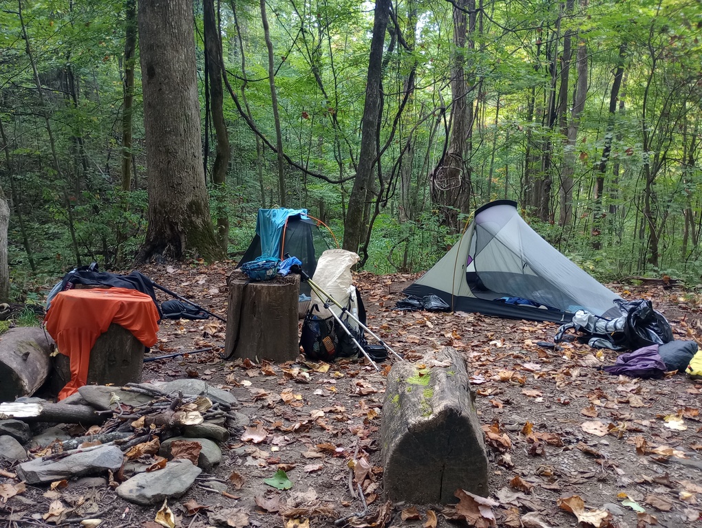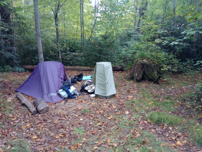It was all worth it when we arrived at Sheep Pen Campsite. This absolutely magical place was worth every foot of elevation. This site is on the former route of the Appalachian Trail, and it was really neat to be where early thruhikers like Earl Shaffer would have been. Some campsites are there because a campsite is needed, other places have campsites because they are wanted, and this was a rainbow connection location, a place where the land felt welcoming and happy to host strange wanderers.