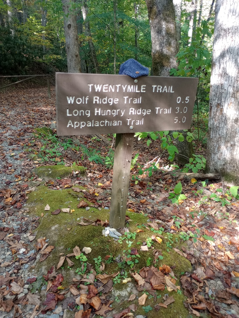 Although I had not seen this piece of trail since 2010, it felt familiar. I had pages from the brown book ripped out, and so when we ate lunch at Ekaneetlee Gap, I loved reading aloud about its importance to the Cherokee. I didn’t have interpretive information like this when I hiked the AT; it’s one reason I would hike it again – I now know so much more about public lands, the history of the trail, and the history of the land that the trail is on.